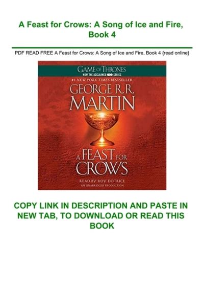 Select files or add your book in reader. The book behind the fourth season of the acclaimed hbo series game of thronesfew books have captivated the imagination and won the devotion and praise of readers and critics everywhere as has george r. Web a feast for crows. But with fear and deceit in the air, their enemies are poised to strike. Book four of a song of fire and ice by george r. Martin publication date 2015 topics recreational reading publisher bantam collection Internet archive a feast for crows: No man lingers long in the sky cells. Web read a feast for crows page 29 online free by george r.r. Web a feast for crows read online free from your iphone, ipad, android, pc, mobile.