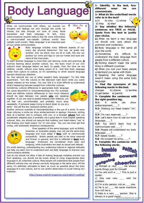 Body Language Reading Comprehension Pdf. Here we present more than 20 books that you can read for free and download in pdf. Pictures & present continuous worksheet (pdf) a collection of dialogs on health topics.