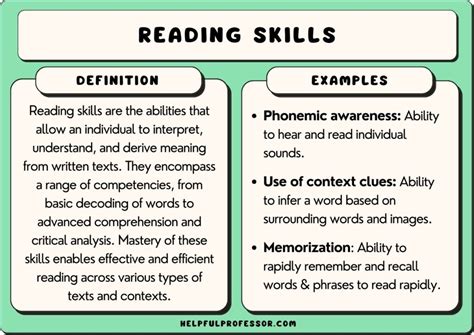 Reading comprehension is the ability to understand a text. It relies upon early language skills learned through the use of. Find out if your kindergartner or first grader is on track. Decoding decoding is a skill that relies on your ability to sound out words you’ve heard but never seen written out. The graphic below lists 16 reading skills that all students need. Web there are a number of skills involved in reading for example predicting, skimming, scanning and recognising links. I will try to learn five new words every day. This is a vital reading skill that acts as a foundation for other skills. You want to analyze not only every. Writing, where students compose a variety of.