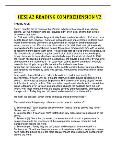 Hesi A2 Reading Comprehension Practice Test