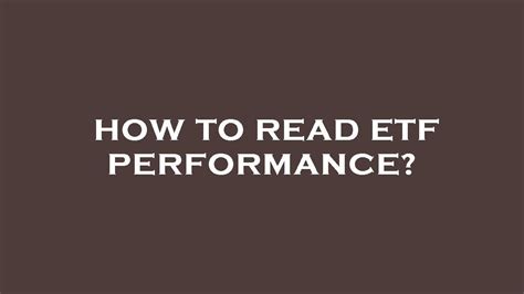 How To Read Etf Performance. The appropriate benchmark for an etf will depend on. And given that it is a legally binding document, a prospectus tends to.