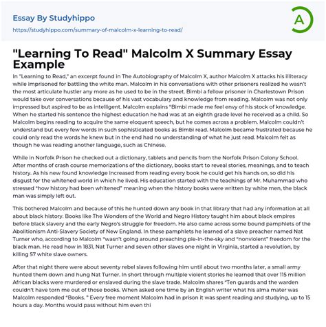 Perfect for acing essays, tests, and quizzes, as well as. Born malcolmlittle on may 19,1925, malcolm x was one of the most articulate and powerful leadersof black america during the 1960s. When he was child he was orphaned and went from foster house to foster house and later became involved in. When he was on the street, malcolm realized that he. He informs people that through our history books, there have been modifications that restrain the. While in prison, malcolm x taugh himself from dictionaries and books how to become literate. In the excerpt “learning to read” from his 1965 autobiography, malcolm x argues that he had more opportunity to learn about the world and specifically black history in prison than he would have received in a formal education. How does malcom x define literacy, and how is his definition. In a homemade education by malcolm x, malcolm x describes how his life in prison changed his outlook on his any many peoples lives. His motivation arises from wanting to interact with mr.