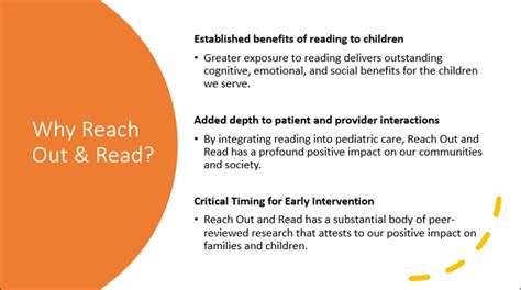 Reach Out And Read Program . Learn more “i had no idea that reading together could bring benefits to an infant—when we started, it quickly became our favorite part of the day.” Our influence continues to grow: