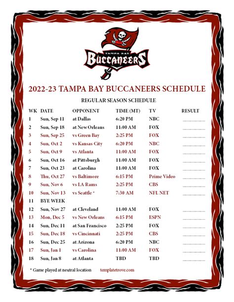 2022 Tampa Bay Buccaneers Schedule